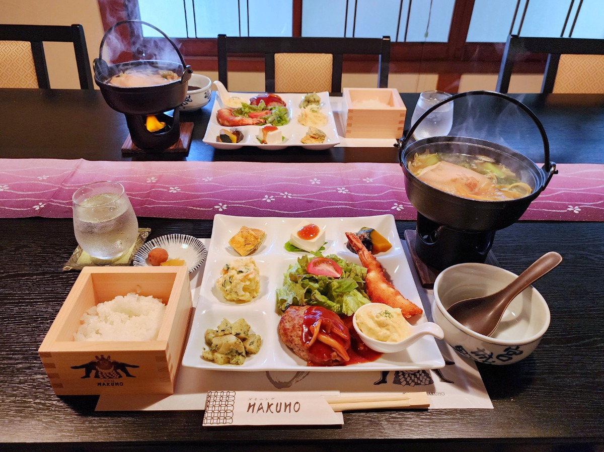 メインのお料理と副菜が約6種でボリューム満点な上に、白鵬が現役時代に食べていたほんまもんのちゃんこ鍋までいただける豪華ランチです。