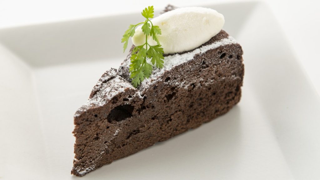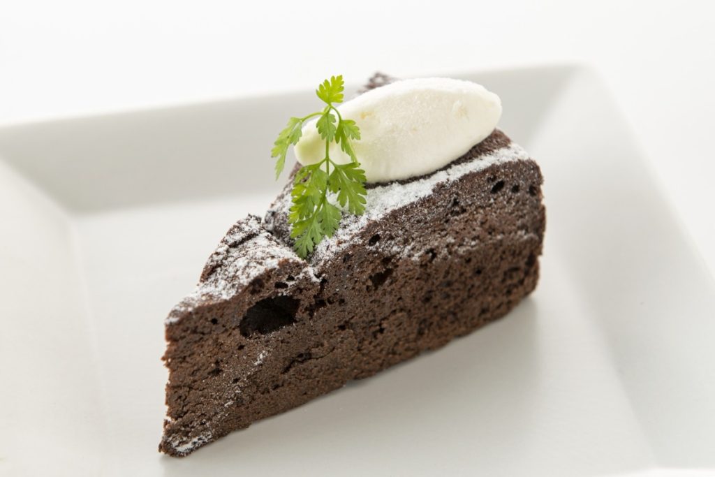 フランス語「Gâteau au chocolat(ガトー・オ・ショコラ)」がさらに訛り、「ガトーショコラ」と呼ばれるようになったチョコレートケーキ。