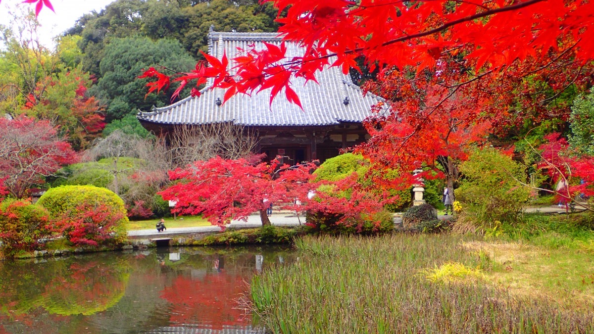 中でも1200年の歴史を経た浄土式庭園(本堂前)の紅葉は有名で、日本紅葉の名所100選にも選ばれているほど。