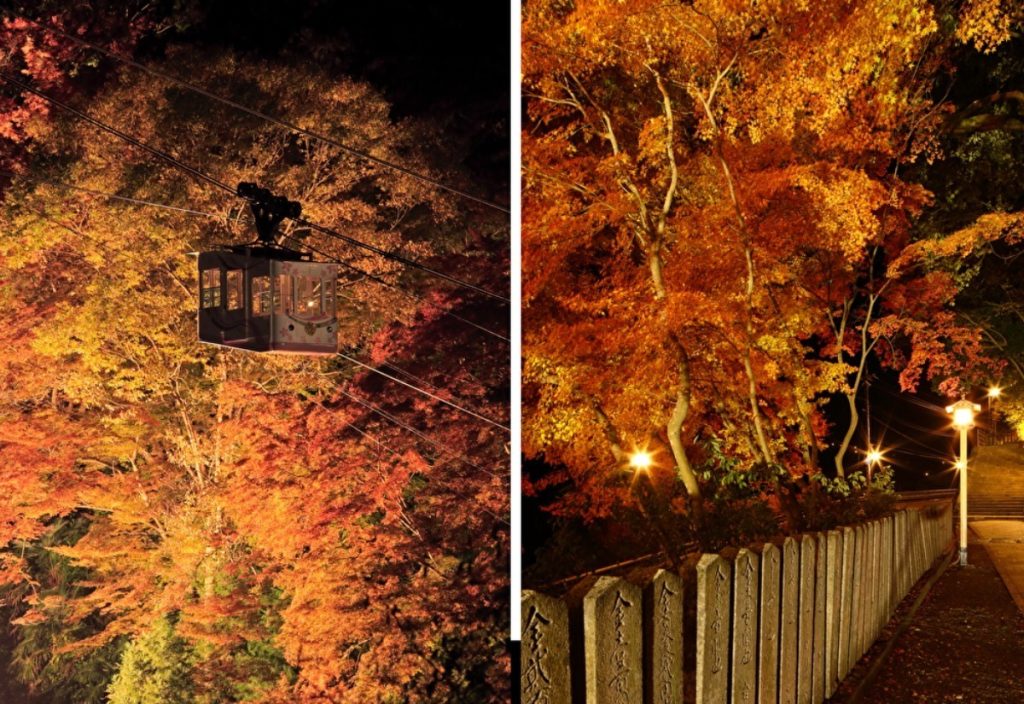 紅葉期のみの夜間ライトアップもあり、昼と夜、それぞれ違う表情の吉野山を楽しめるのもポイント。