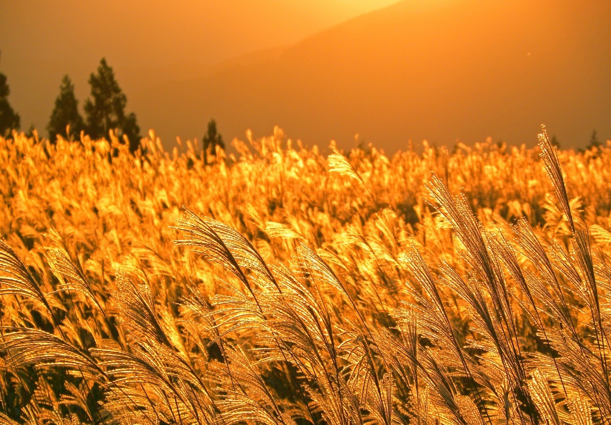 10月中旬~11月下旬には、黄金にたなびく絶景が広がるススキの名所となる。