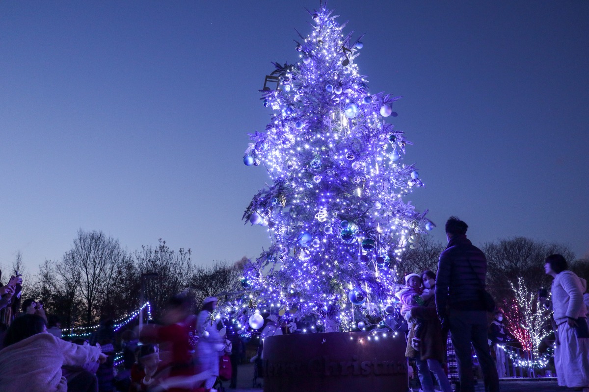 期間中、「光の花咲く馬見丘陵公園のクリスマス」をテーマに、華やかなイルミネーションが光の花を演出。北エリア・彩りの広場には、高さ約5メートルの生木のクリスマスツリー(モミの木)が登場し、クリスマスムードを高めてくれる。