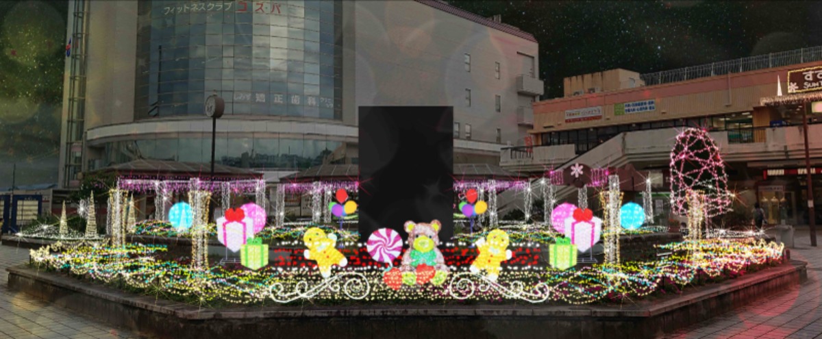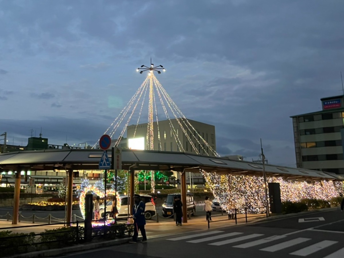 今年も桜井駅の北⼝と南⼝に設置し、LED電球それぞれ15000球を使ったイルミネーションを展開する。
