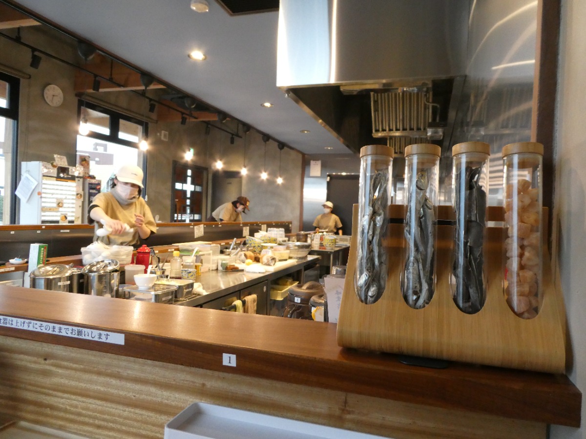 店内も真新しく広い厨房が印象的で、煮干しの良い香りが漂っています。