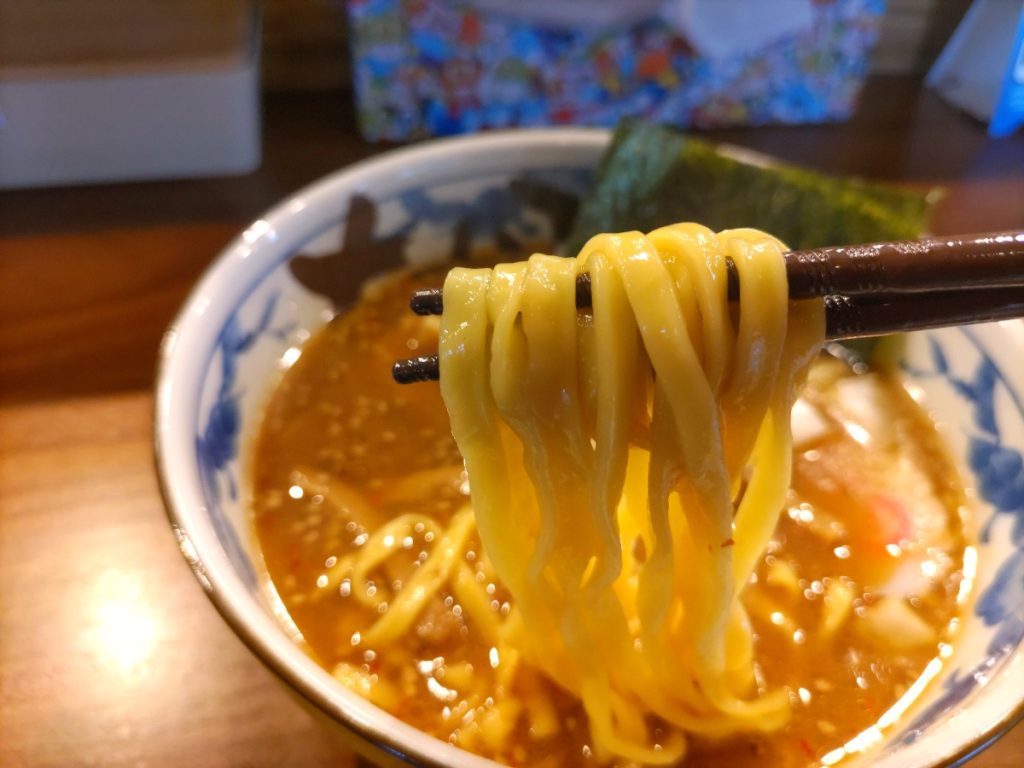 麺は醤油同様に三河屋製麺所の麺を使用されていますが、味噌に合わされるのは平打ち麺。