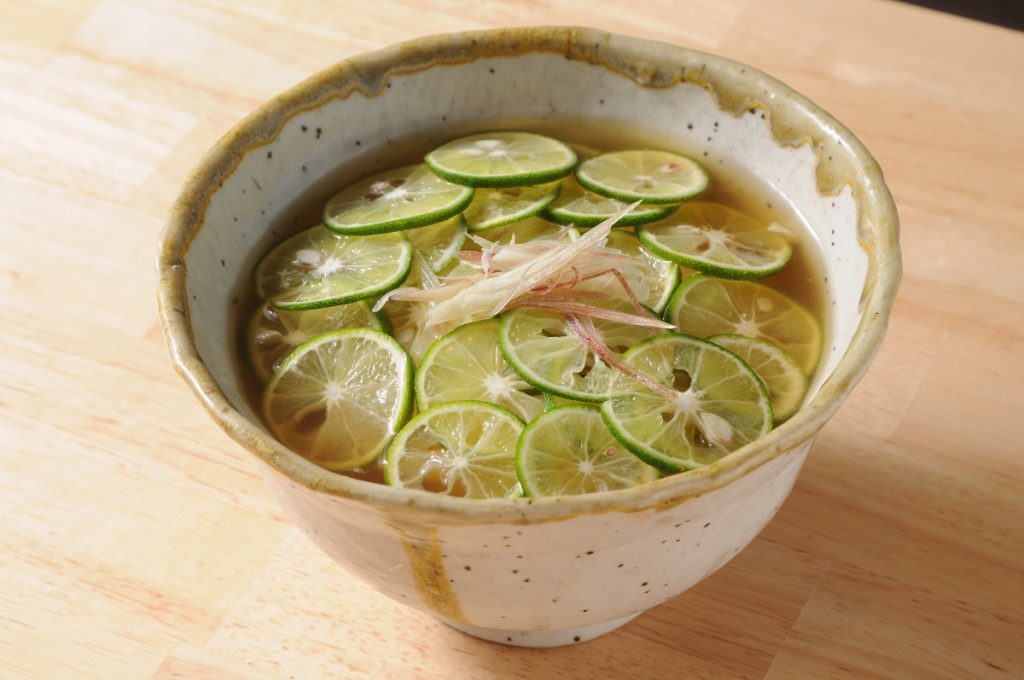 すだちは徳島県産。夏の暑い1日を乗り切るために食べたい、爽やかな一杯。
