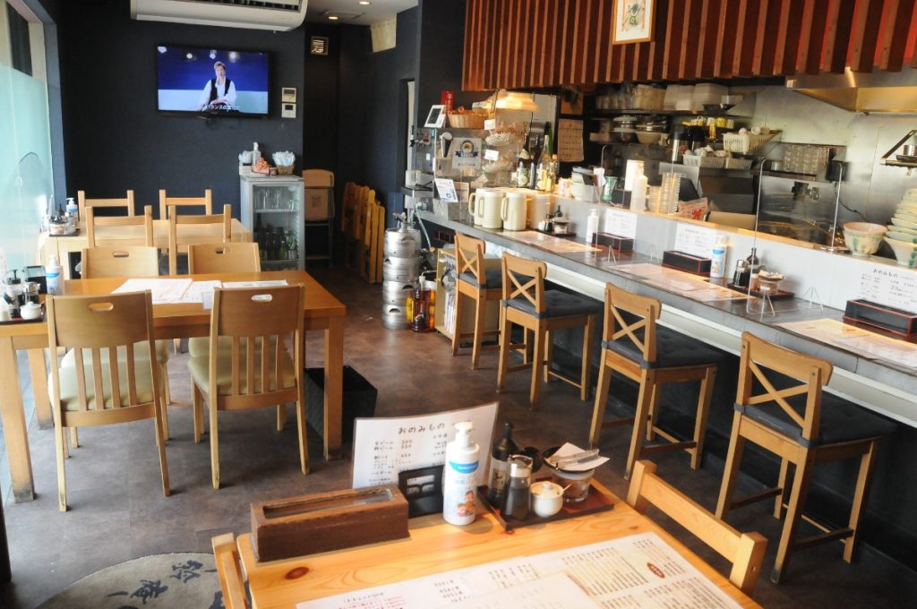テーブルとカウンターがあり、家族連れでもおひとりでも立ち寄りやすい。