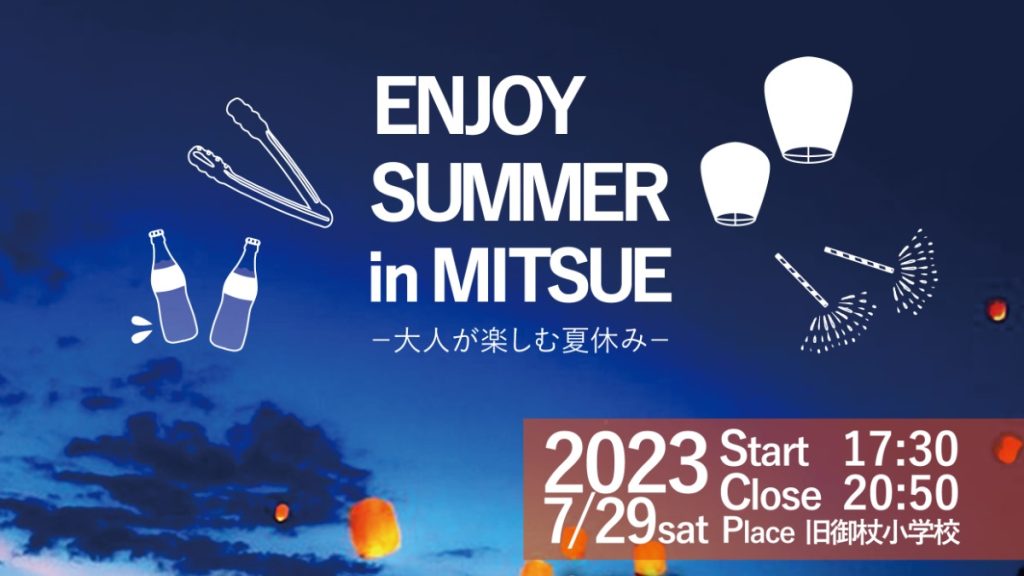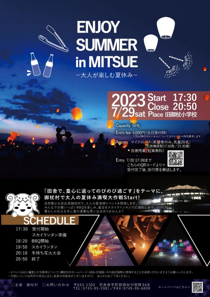 TOPイベント「ENJOY SUMMER in MITSUE -大人が楽しむ夏休み-」夏は御杖村でBBQにスカイランタンに手持ち花火だ!!