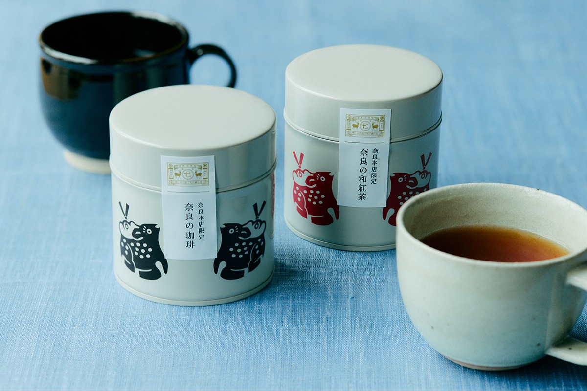 奈良のつくり手による珈琲と和紅茶は、手仕事による温かみある缶とセット。