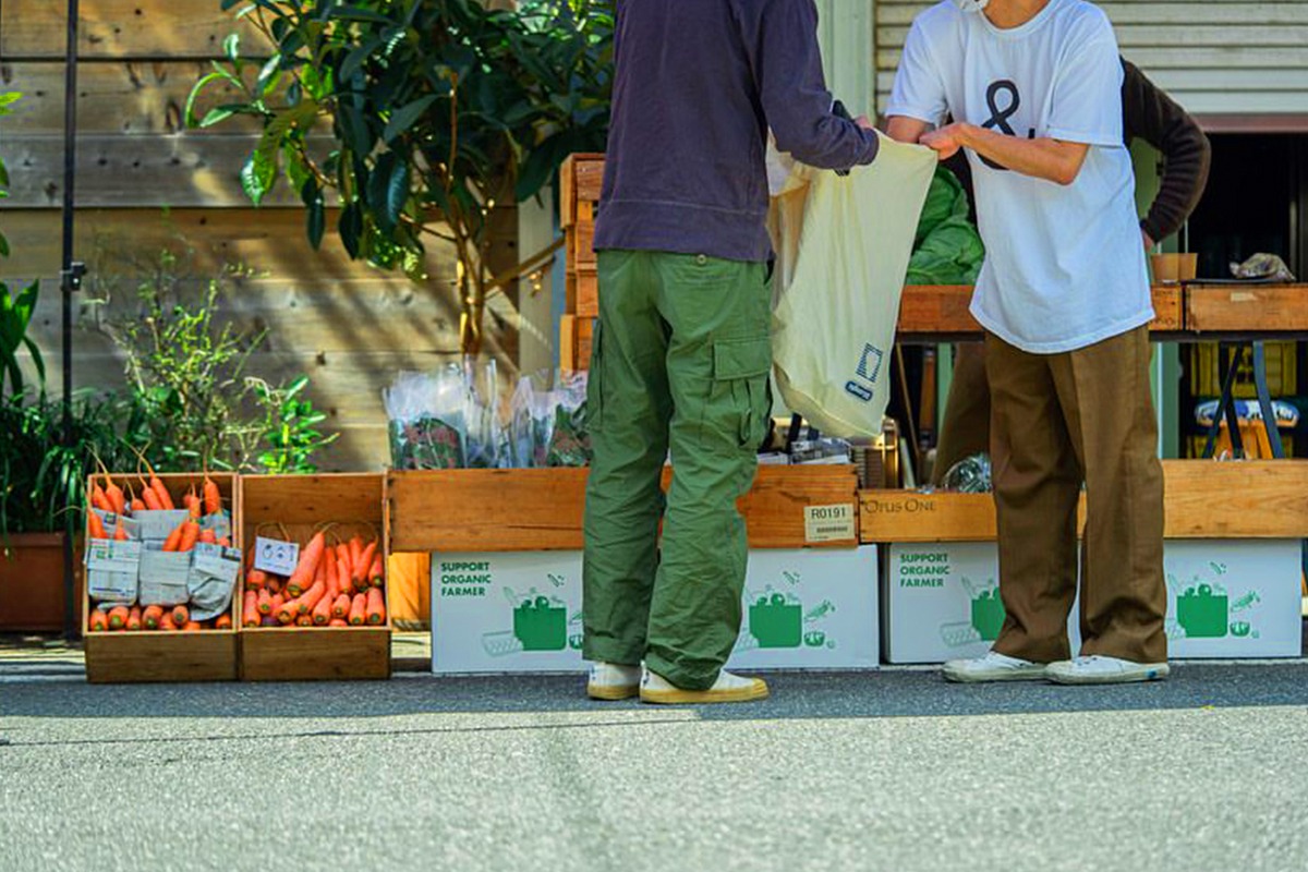 今回は、奈良近郊で育まれた有機野菜や天然酵母で焼き上げたパン、奈良の実験的本屋ユニットが選書する本がずらりと並ぶ。