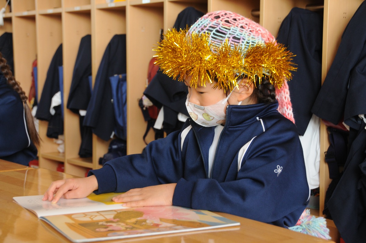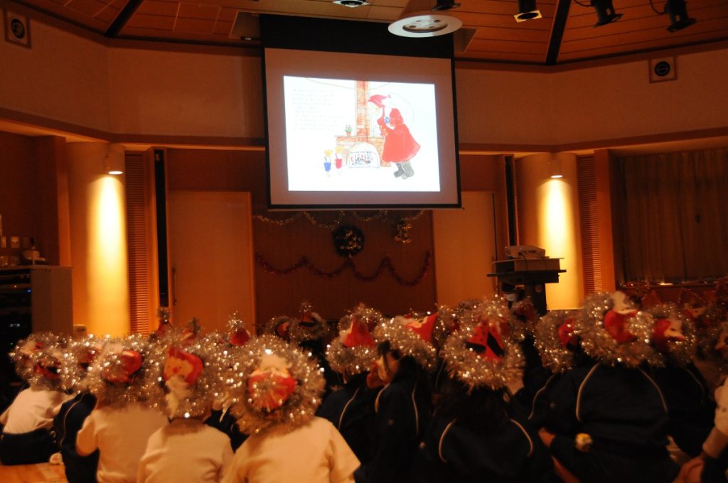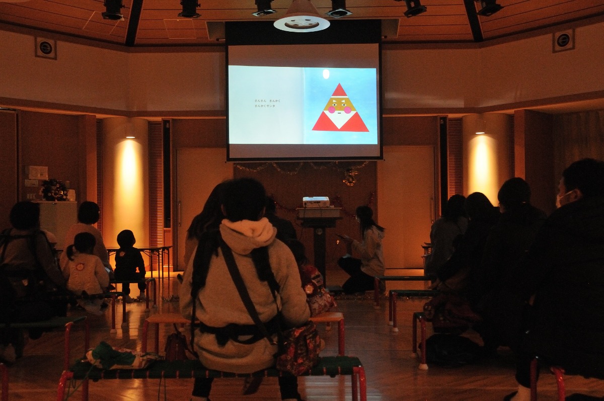 サンタクロースとさようならをした後は、絵本「さんかくサンタ」の読み聞かせ会に。