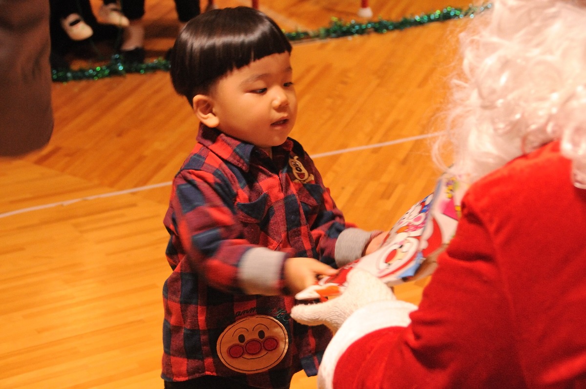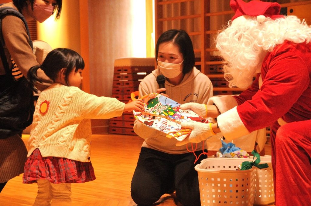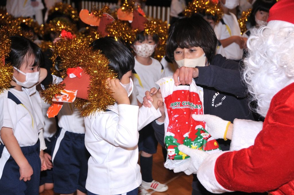 1人ひとりサンタクロースから手渡ししてもらいます。