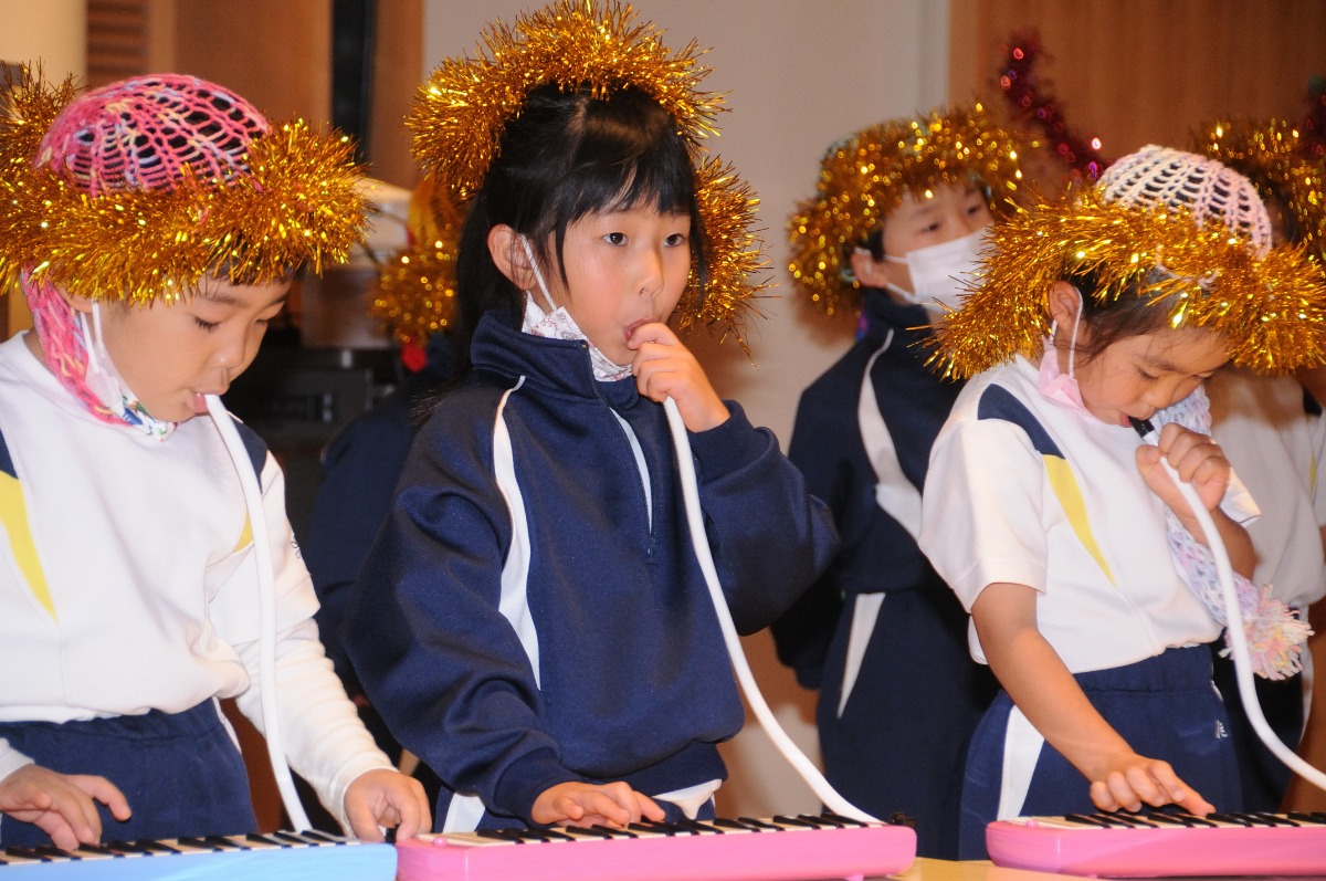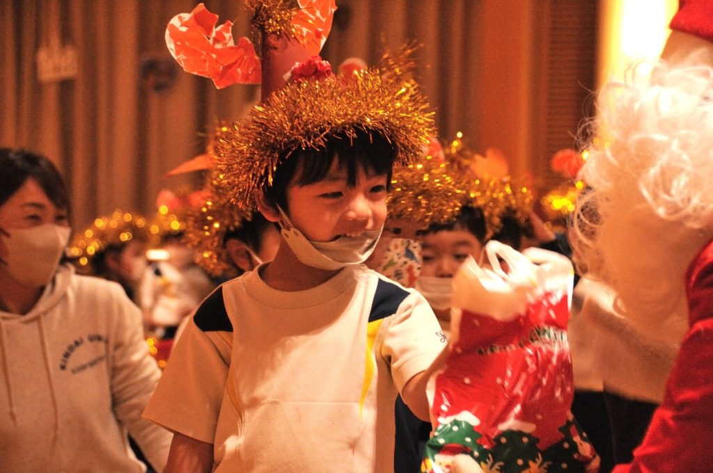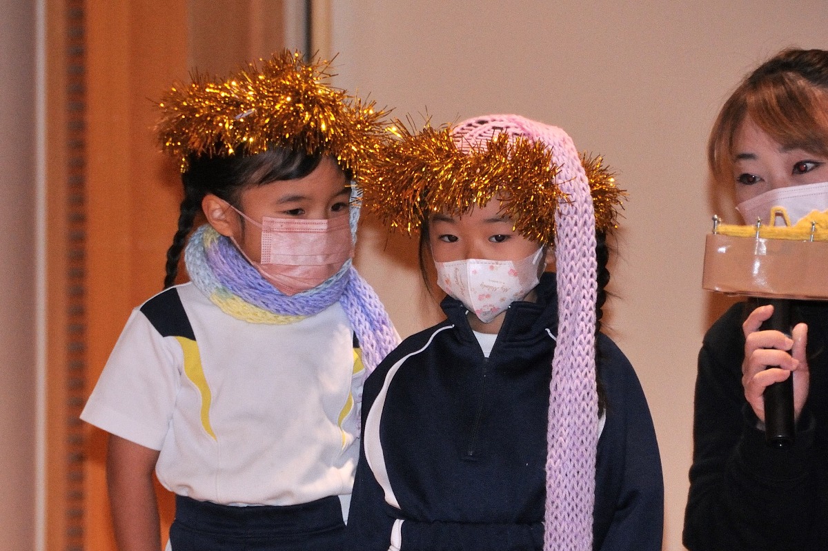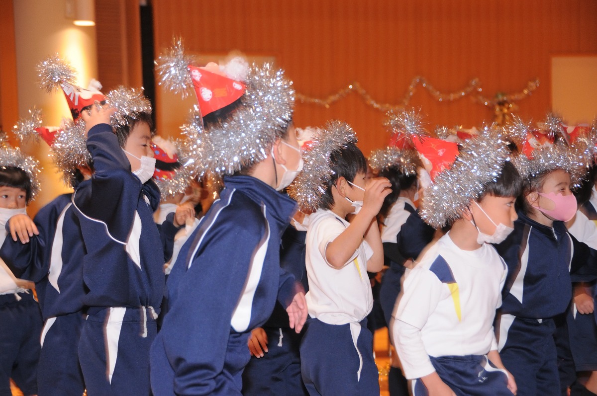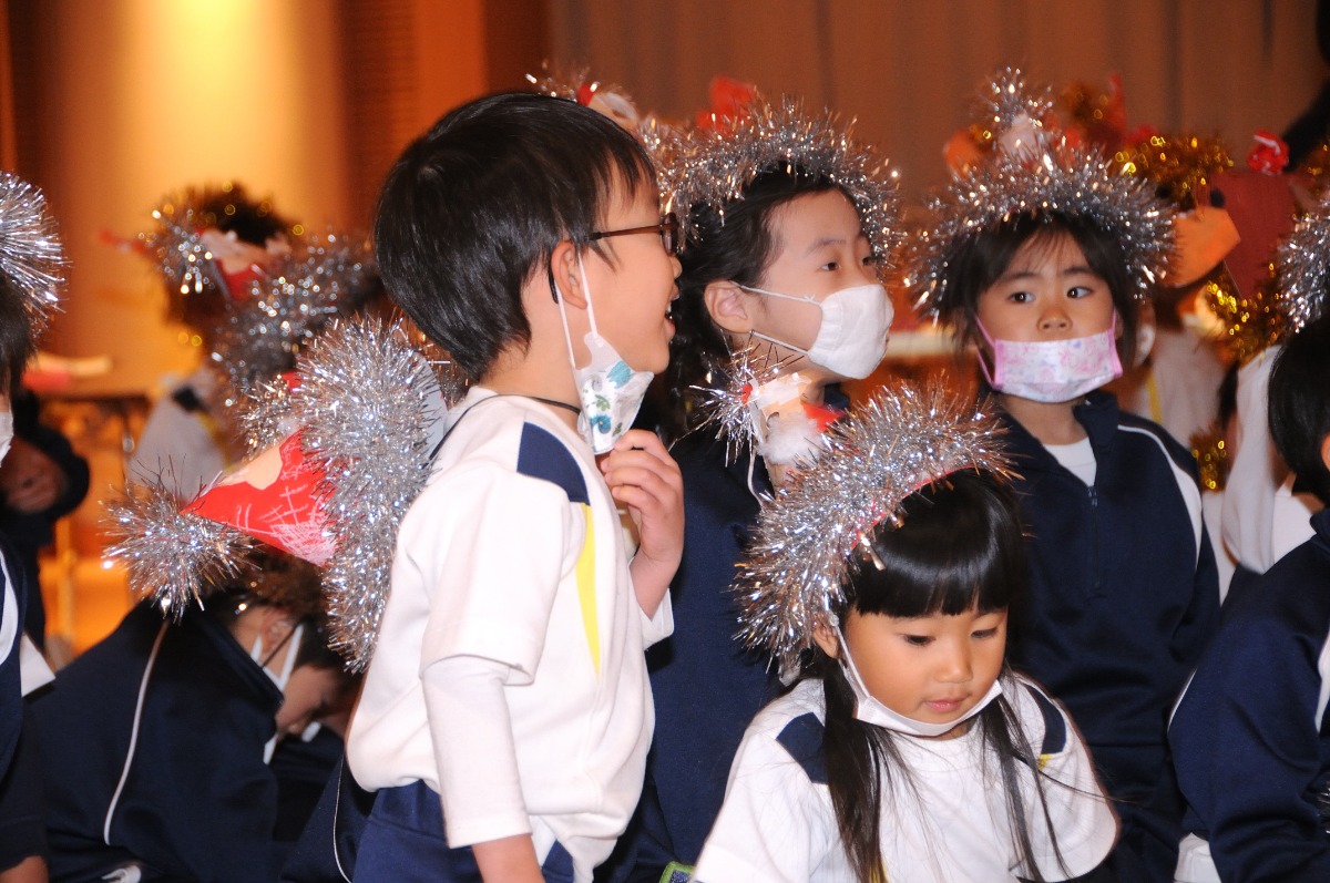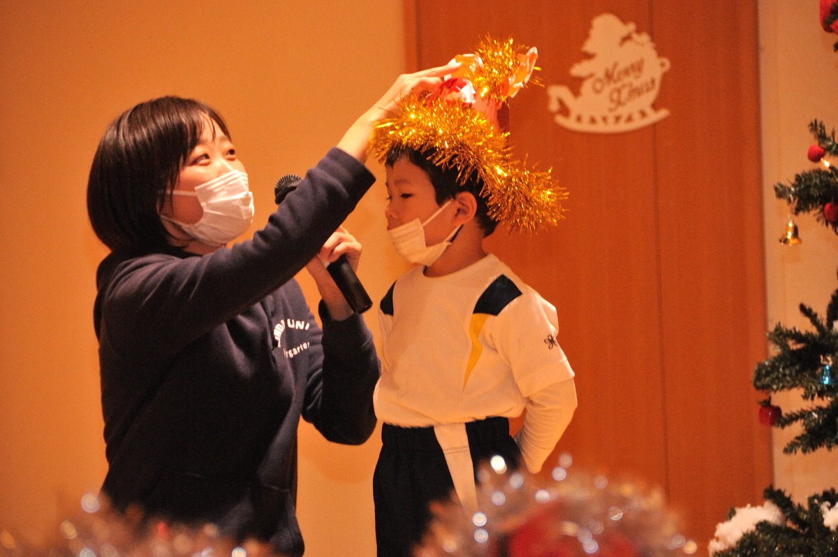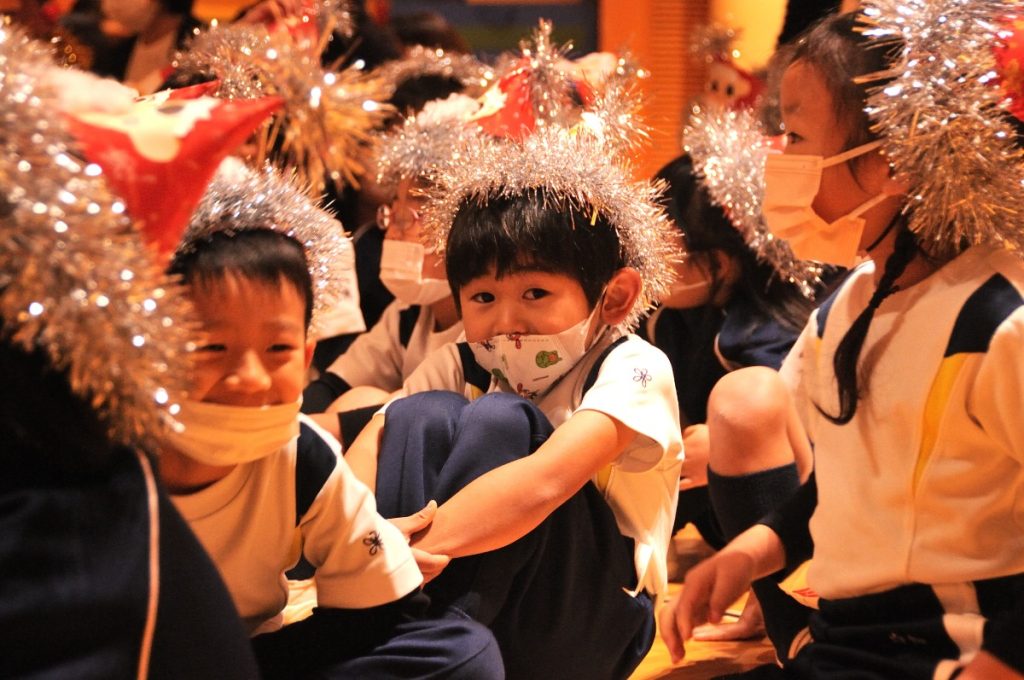 クリスマス会の始まりに、学年ごとに手作り帽子の紹介をしてくれました。