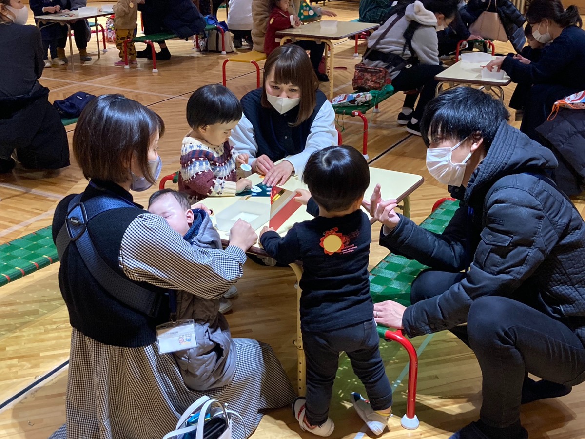 4月は保護者とおにぎりを作り、5月は身近な素材を使ってもの作りを行いました。