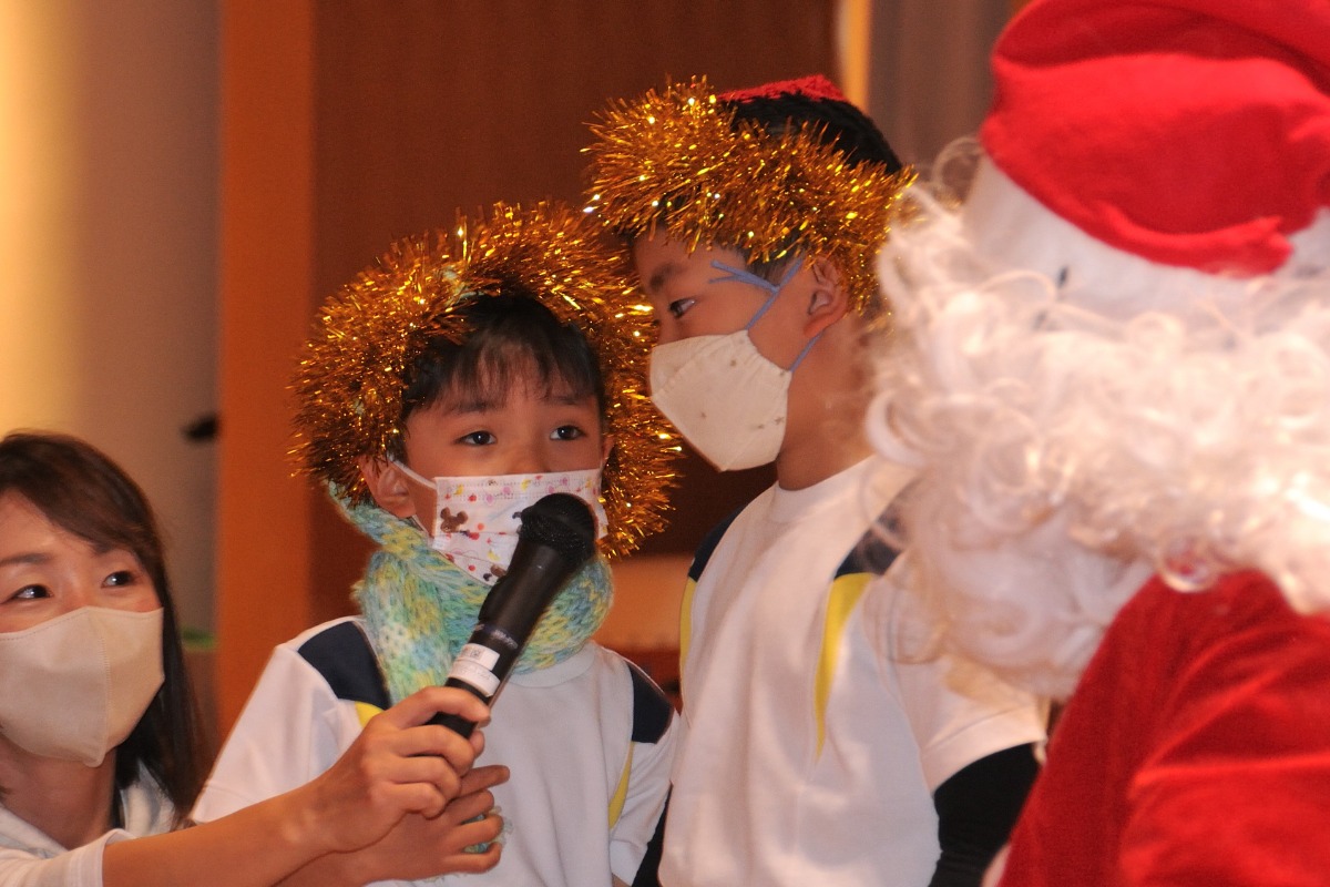 胸を弾ませながら、サンタクロースと一緒に歌って踊ります。