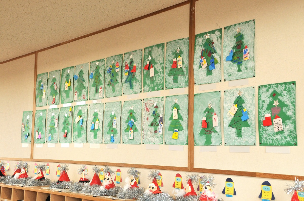 子どもたちはこの日のために、クリスマスツリーや帽子を作ってきました。