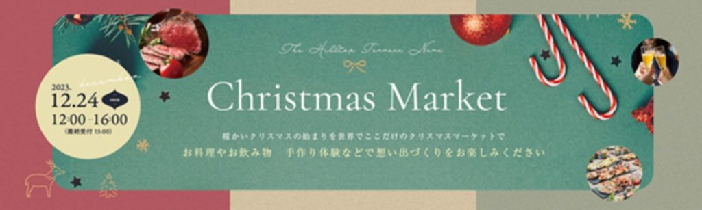 奈良市の『イリスウォーターテラスあやめ池』で12月3日(日)に、クリスマス縁日とクリスマスディナーパーティが、『ザ・ヒルトップテラス奈良』で12月24日(日)にブッフェ&マーケットが開催!