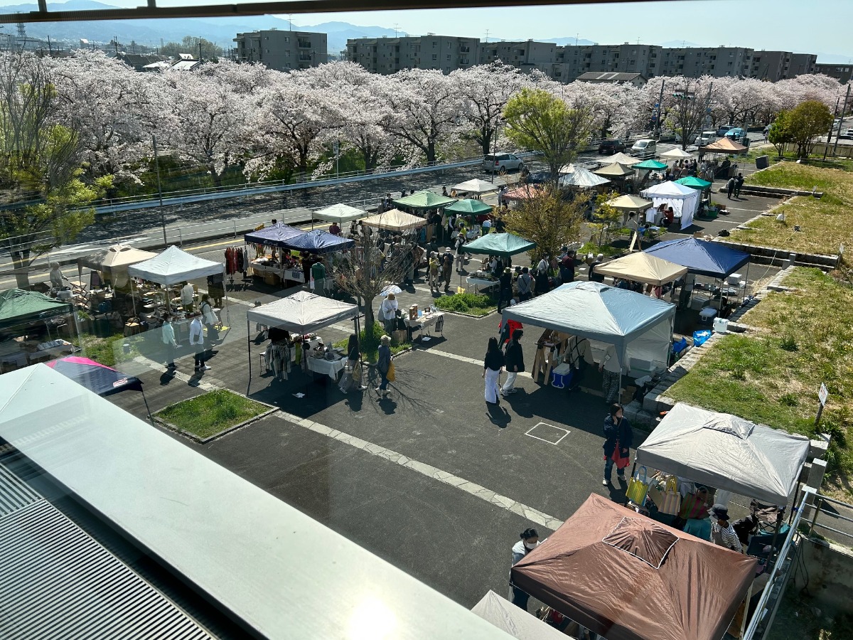 「さくらマーケット」は、佐保川沿いに位置する図書情報館でそんな絶景を眺めながら、素敵なお店や本との出会いを楽しめるイベント。