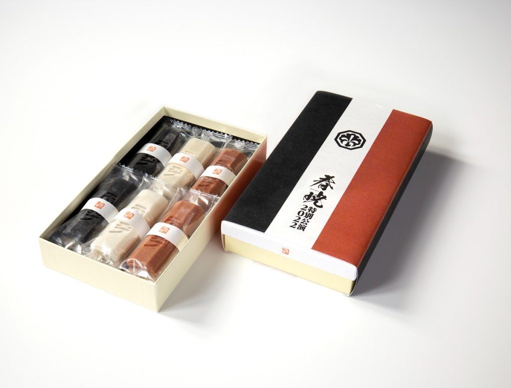 今回、「中村勘九郎 中村七之助 春暁特別公演 2022」にあわせ、最中種は黒・白・柿色の三色でご用意。