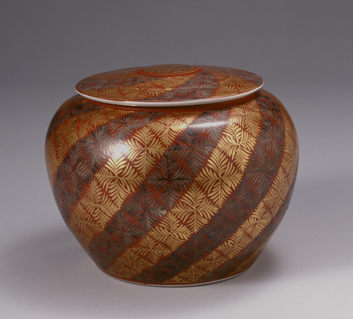 赤地金銀彩羊歯模様蓋付飾壺 1953年 奈良県立美術館蔵