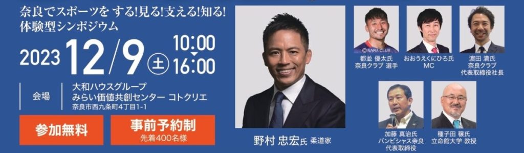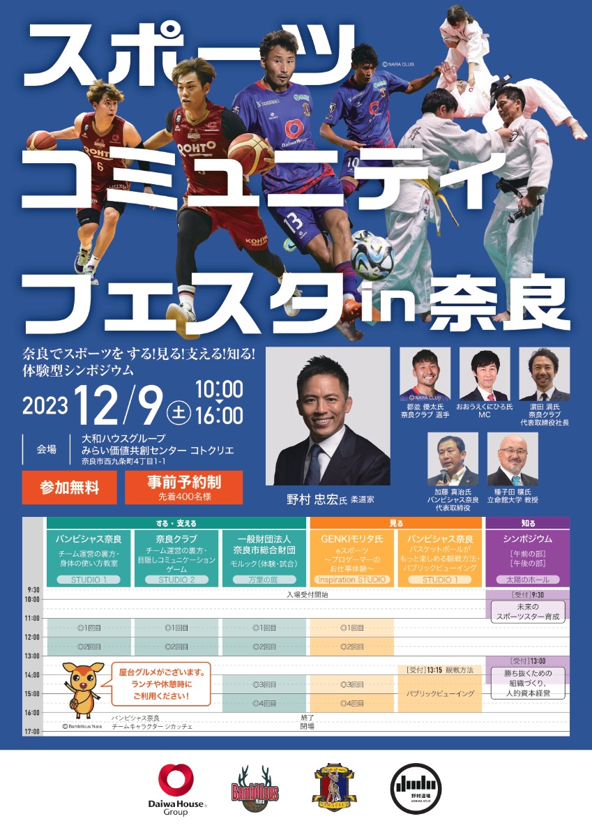 2023年12月9日(土)、奈良市の「みらい価値共創センター コトクリエ」にて、「スポーツコミュニティフェスタ in 奈良」が開催される。