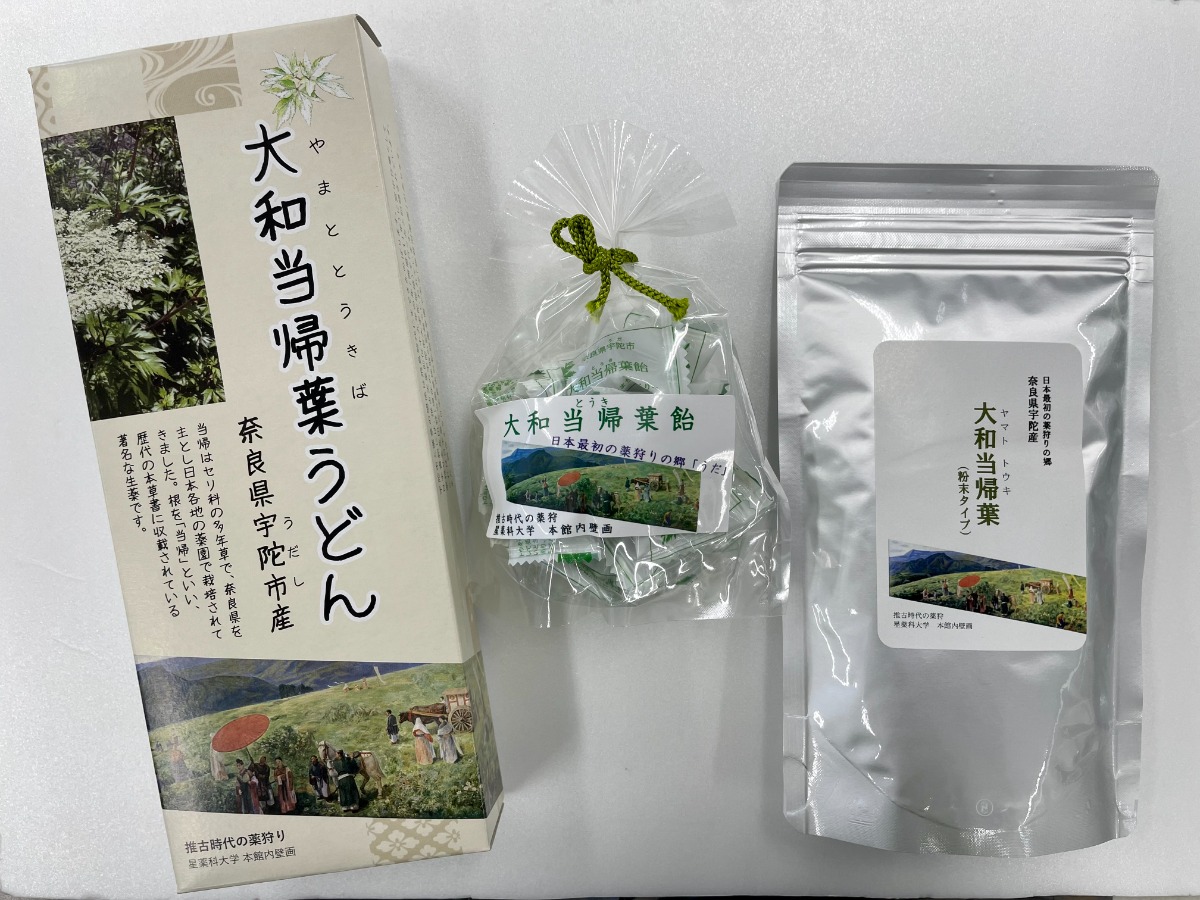 販売商品:大和当帰葉(粉末)、大和当帰うどん、大和当帰葉飴