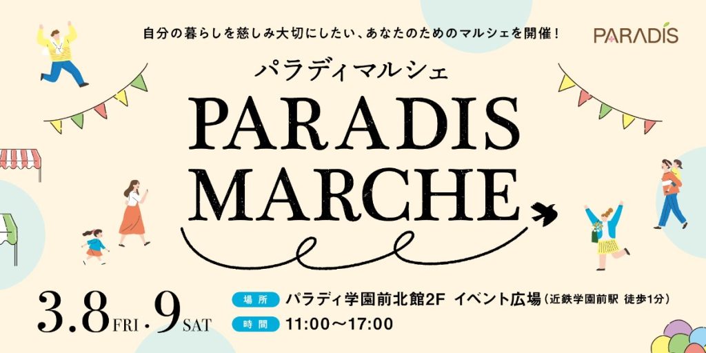 2024年3月8日(金)と9日(土)の2日間にわたり、学園前(奈良県奈良市)にあるパラディ学園前にて「PARADIS MARCHE(パラディマルシェ)」を開催!