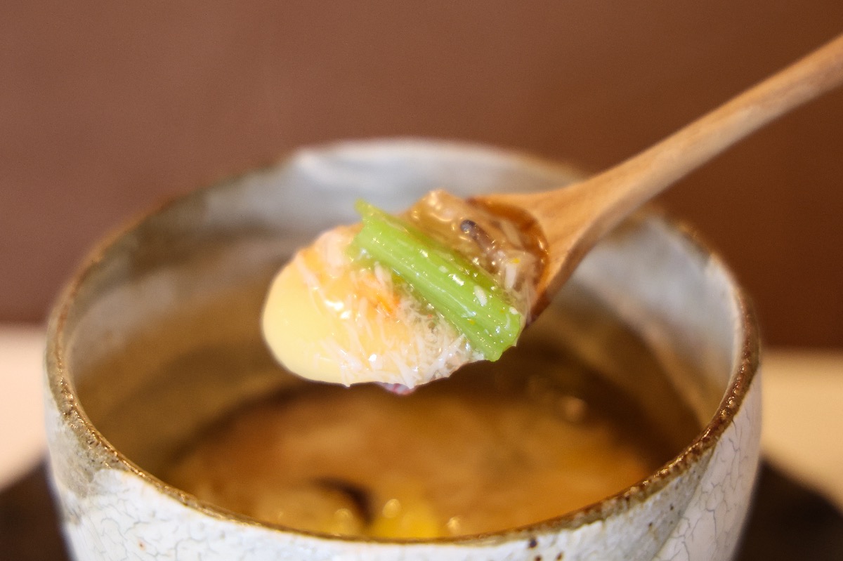 カニあんかけ茶碗蒸し。コースの入りとしてちょうどいい、やさしい一皿。