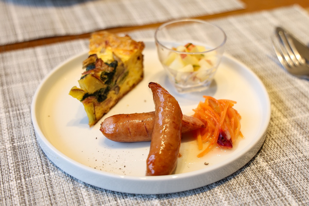 キッシュとソーセージ、フルーツサラダ。