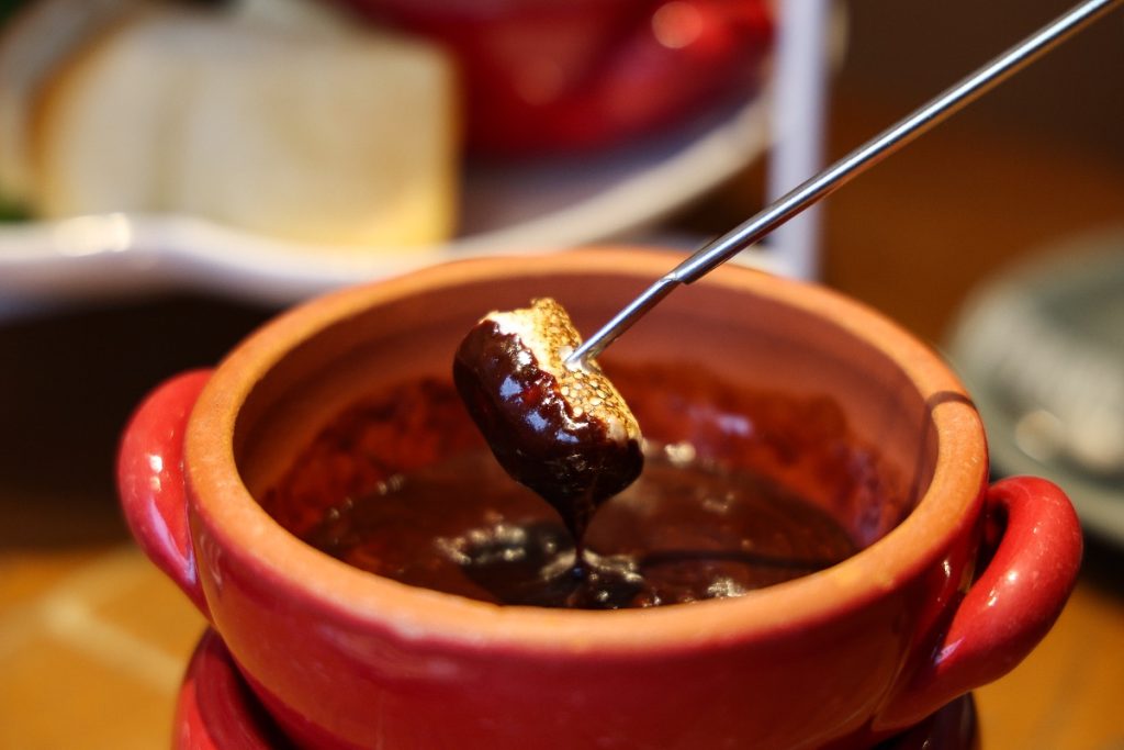 中段のマシュマロは付属のチョコフォンデュで。
