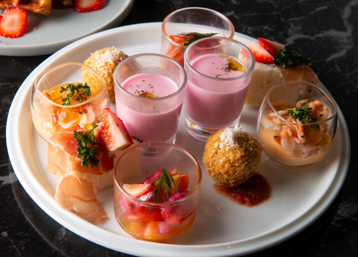 苺とサーモン、トマトを合わせた爽やかなヴィネグレットマリネや、桜海老をアクセントにしたカリフラワーと人参のムース、苺と生ハム、低温調理チキンを組み合わせたサンドイッチ、そして毎回大好評のトリュフマヨディップで味わうフライドポテトなど、ガトーの魅力を引き立てるセイボリーが勢ぞろい。