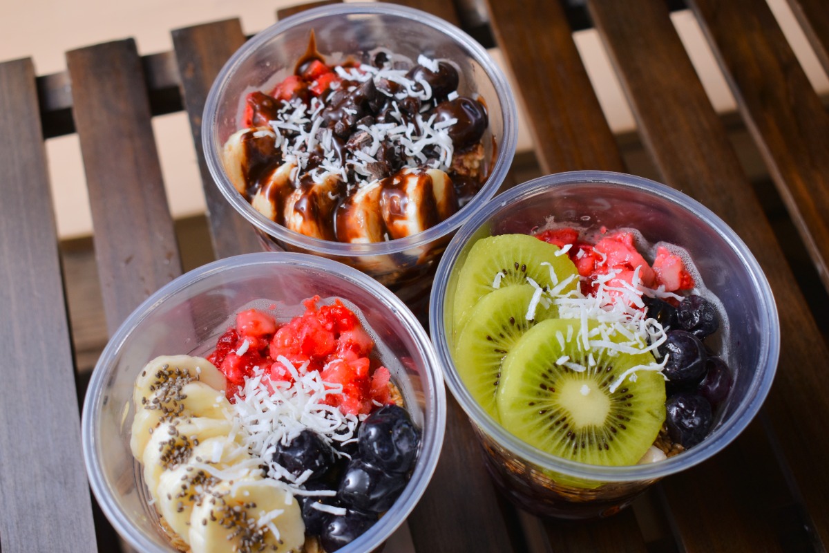 左下から時計回りにアサイーボウル 1,000円、アサイーチョコ 1,100円、アサイーキウイ 1,100円