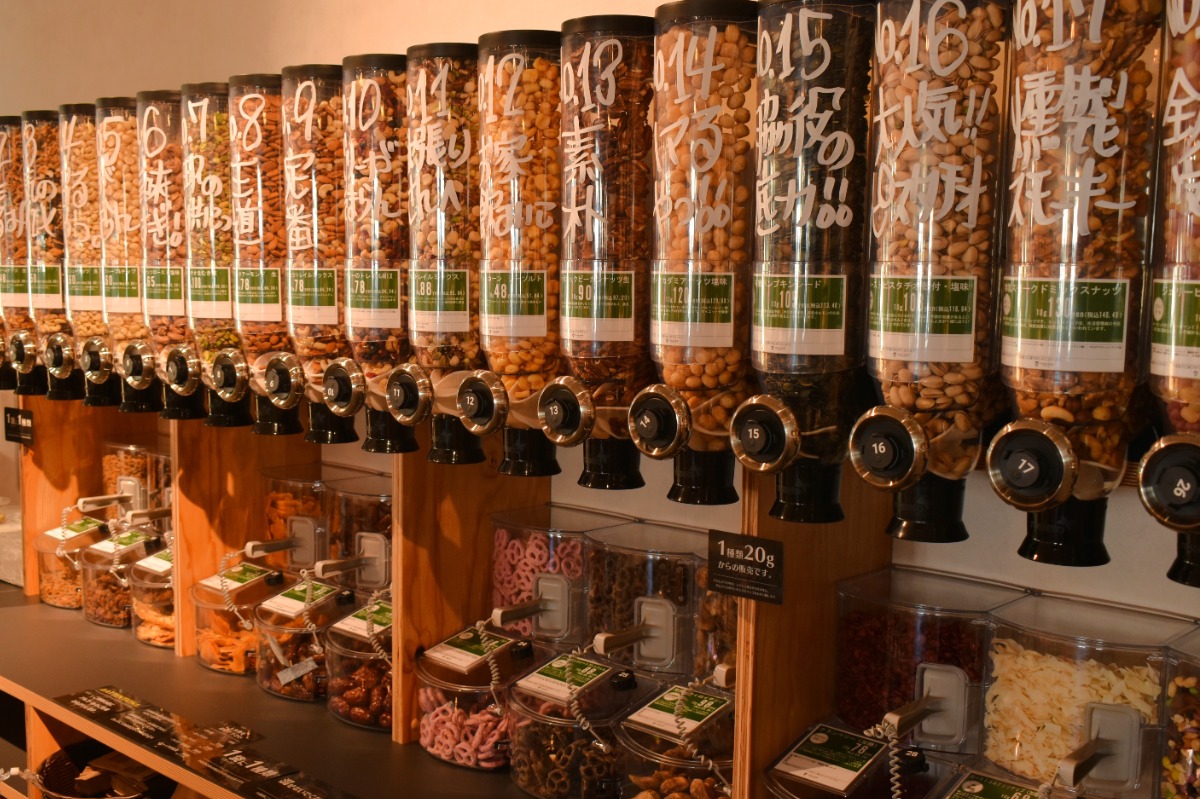 ナッツ類やドライフルーツは一種類20gからの量り売りスタイル。こちらも非常に種類が豊富。