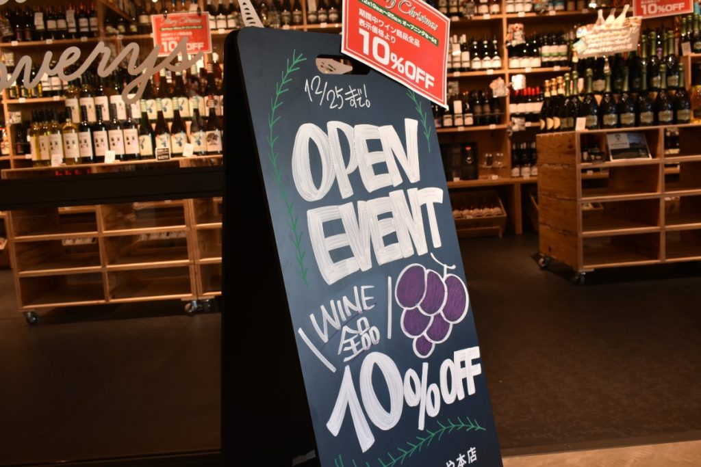 12月25日まではオープン記念でワイン全品とナッツ・ドライフルーツの量り売りが10%オフとなっている。