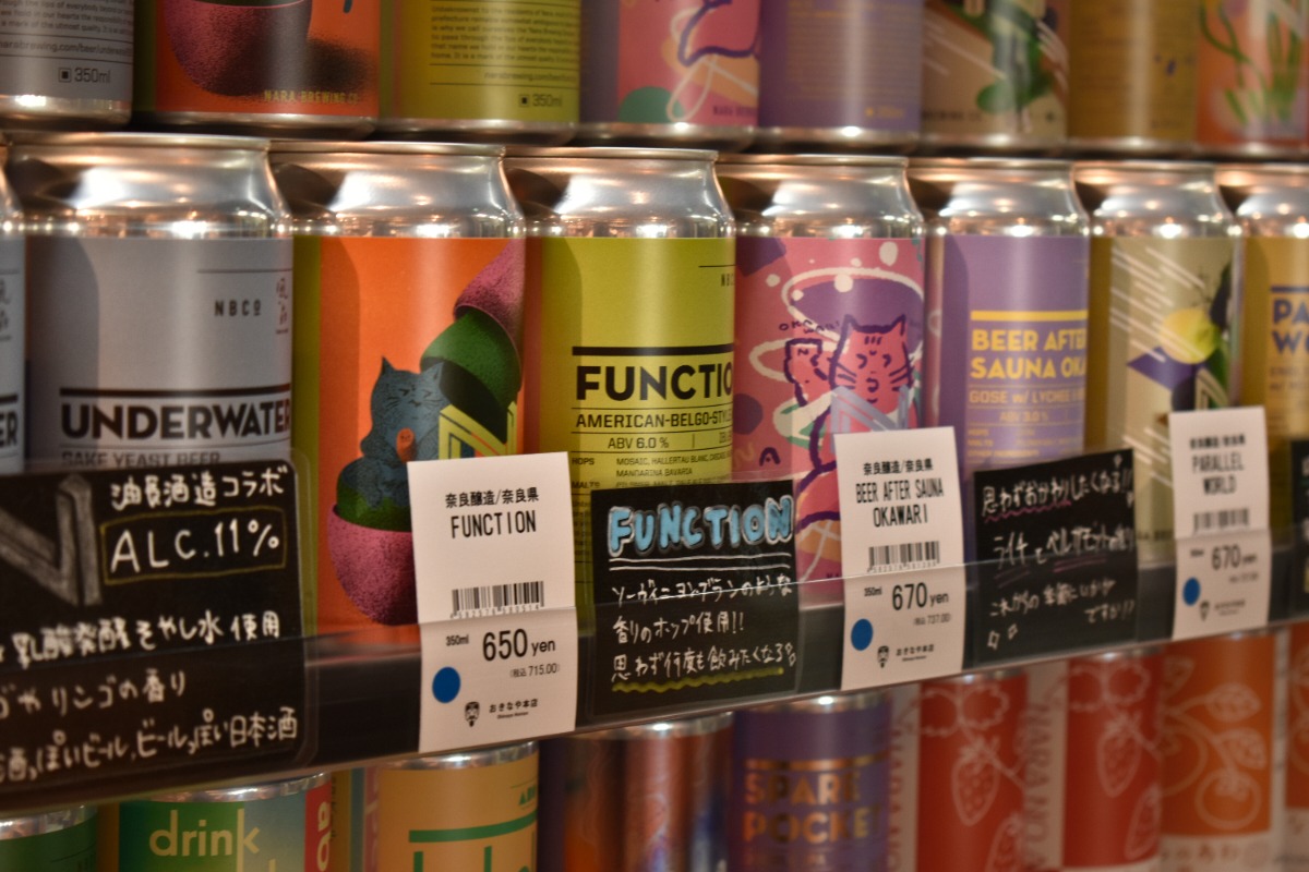 こちらはスタッフさんおススメ“奈良醸造”の定番アイテム“FUNCTION”。奈良醸造では他にも油長酒造とのコラボビールなど興味深い商品がたくさん。