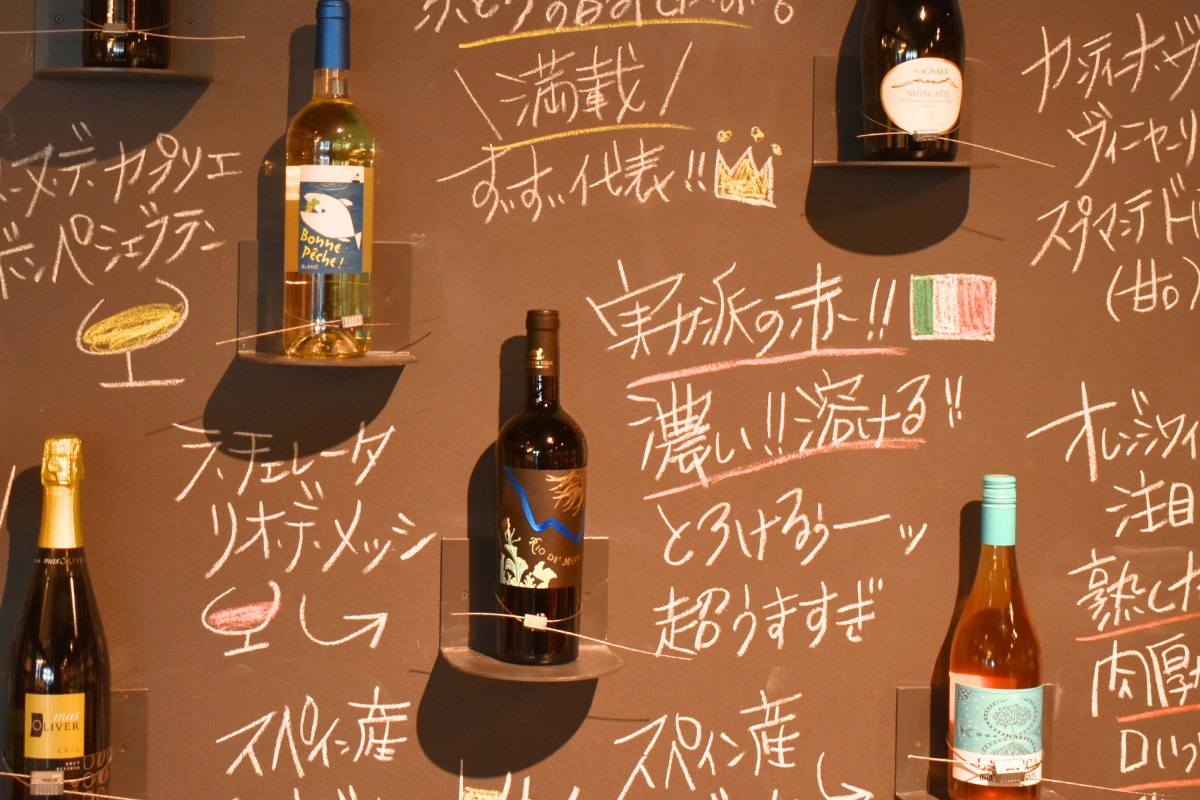 そのうちのおよそ7割が、添加物不使用のナチュラルワインとなっており、一般のスーパーや酒屋ではまず見かけないような銘柄が並ぶ。
