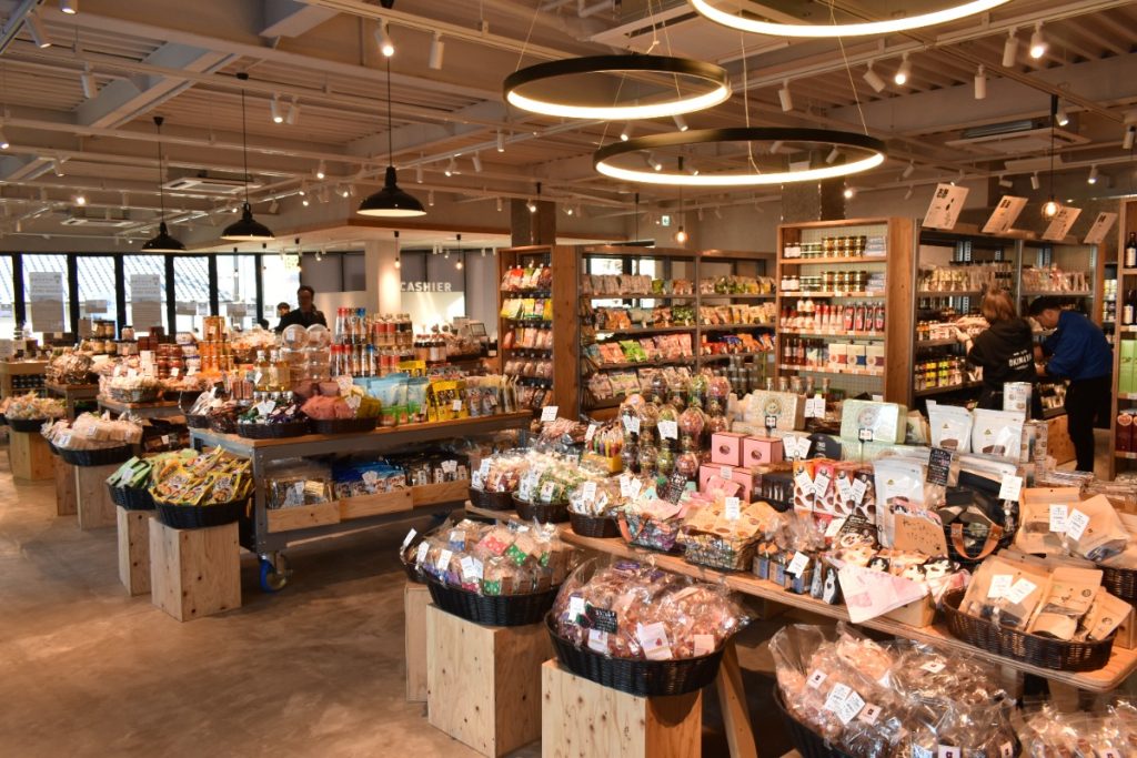 お菓子やおつまみ、乾物、調味料などの食料品も数多く取り扱っている。