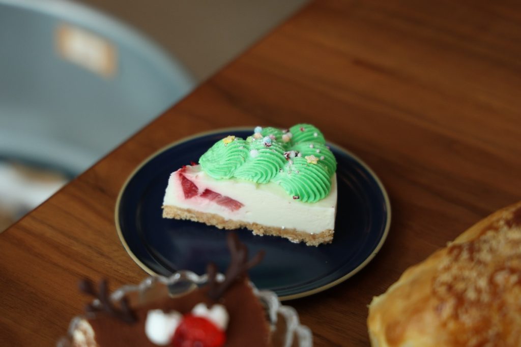 サクッとしたタルト生地が全体をまとめ、可愛らしいクリスマスデコレーションが気分を上げてくれる。