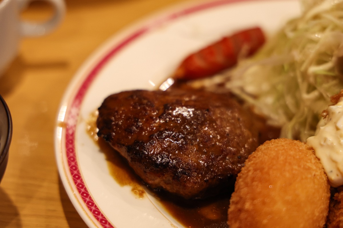 ハンバーグはふわっと柔らかく、デミグラスソースが絡んで満足感抜群。