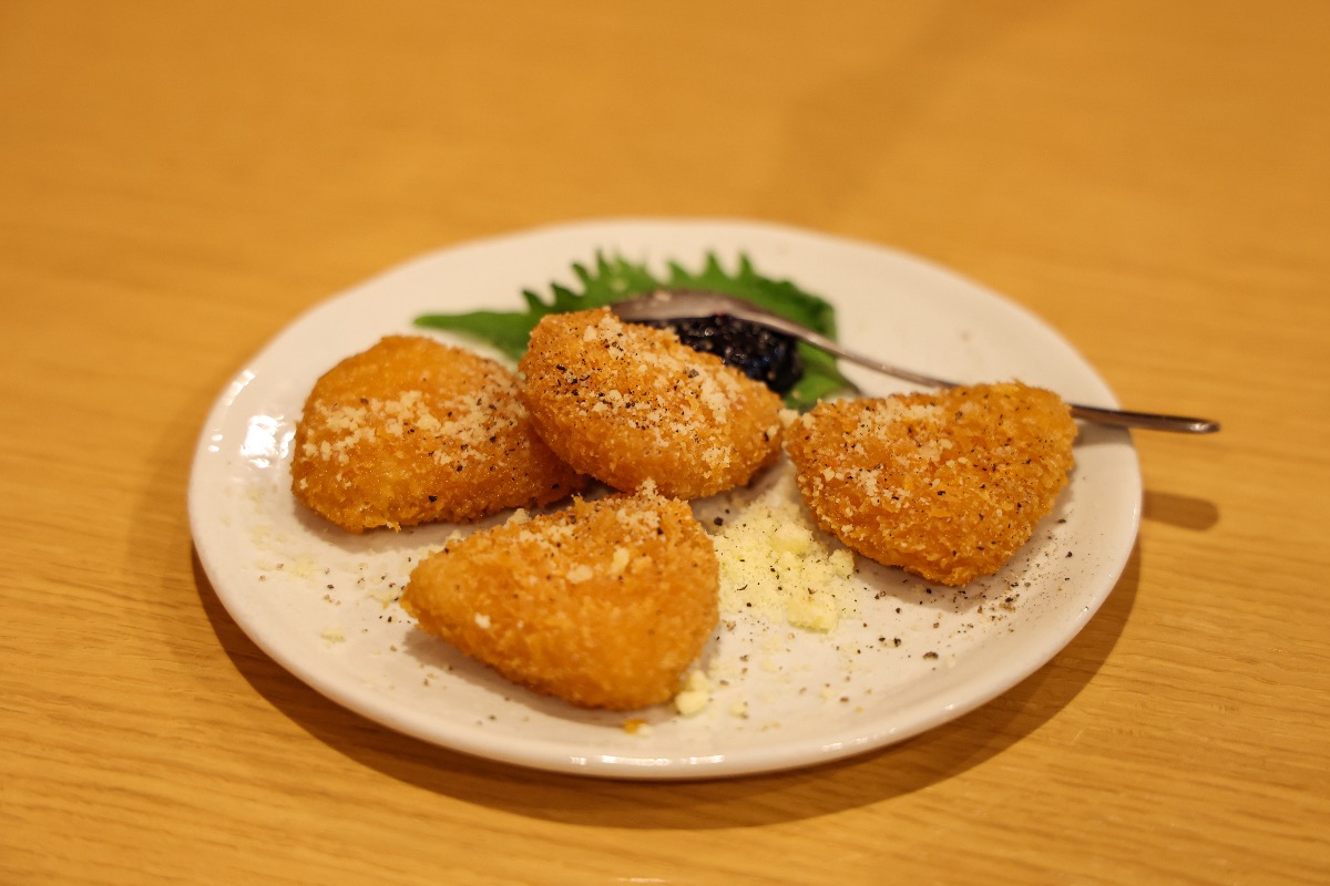 熱々のカマンベールチーズをサクサクの衣で包んだフライは、口に入れた瞬間にチーズがとろりと溶け出し、濃厚な旨味が広がります。