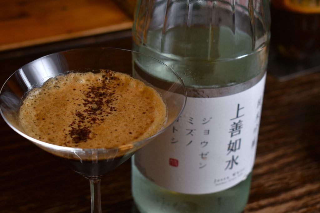 こちらはエスプレッソと日本酒のカクテル。エスプレッソの泡と切れの良い日本酒の風味が合わさり、さっぱりとした味わいを演出する。
