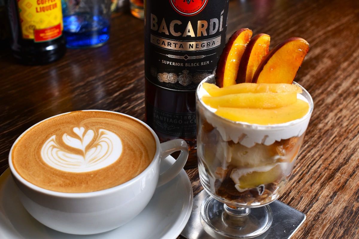 写真左のカフェはダークラムとエスプレッソのカクテル“カフェラム”。コーヒーのほろ苦さとダークラムの甘い香りが絶妙にマッチした一杯。