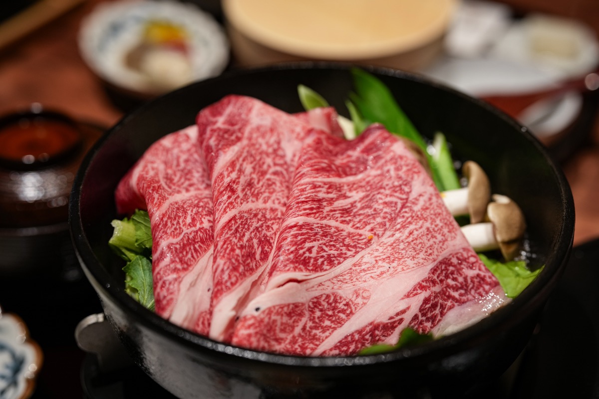 大和牛のすき焼きは90gが3,278円、150gが4,378円の設定。