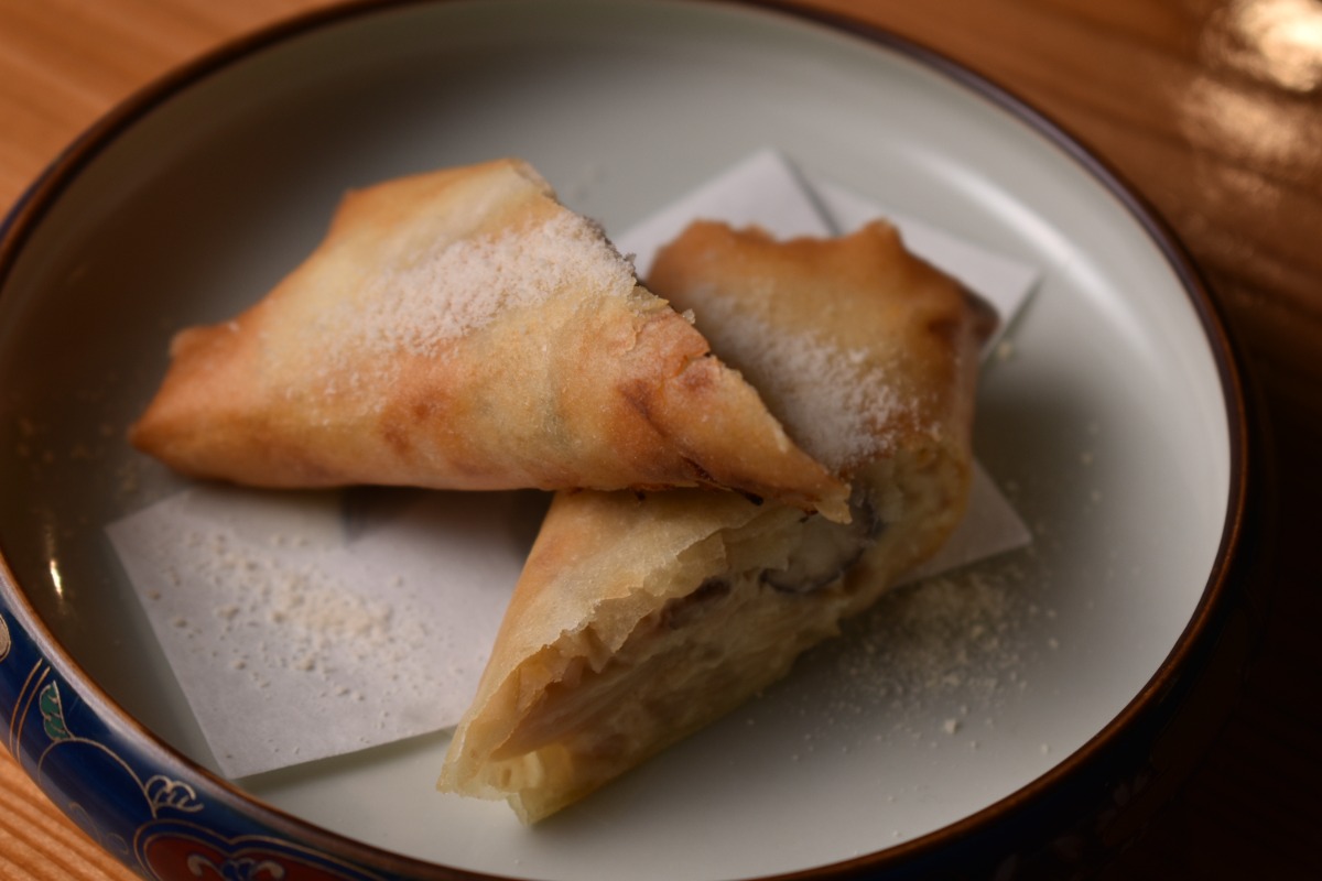 春巻きの中には、世界三大キノコ“ポルチーニ”の香りがしっかり移ったクリームがとろり。
