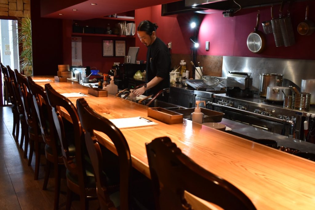シェフの姿を間近に見ながらオリジナル料理を堪能