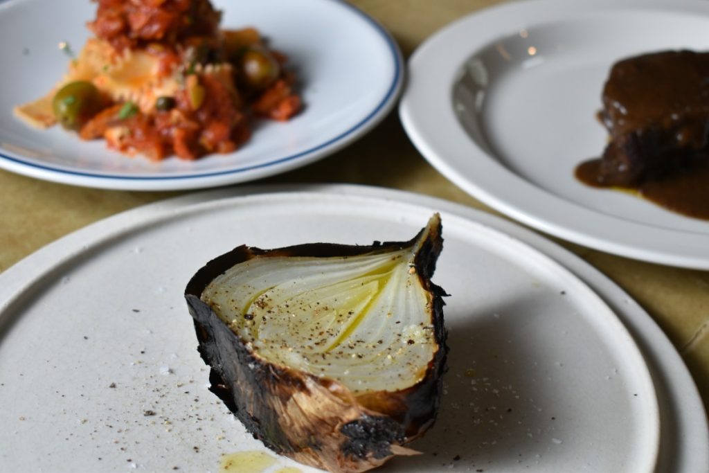 シンプルな料理だが、皮付きのまま窯で焼かれた玉ねぎは中がトロトロと柔らかく、甘みがギュッと引き出されている。