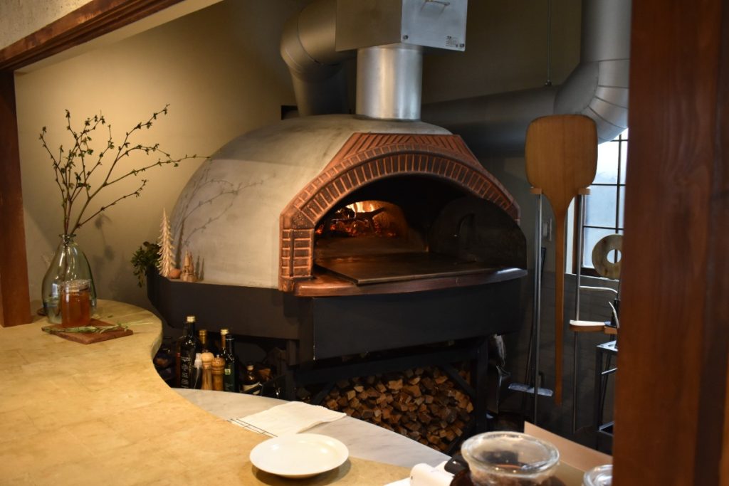 お店の中に入ってまず目につくのは、カウンター奥の大きな石窯。このお店で行なわれる料理工程の多くにこの窯が使われている。