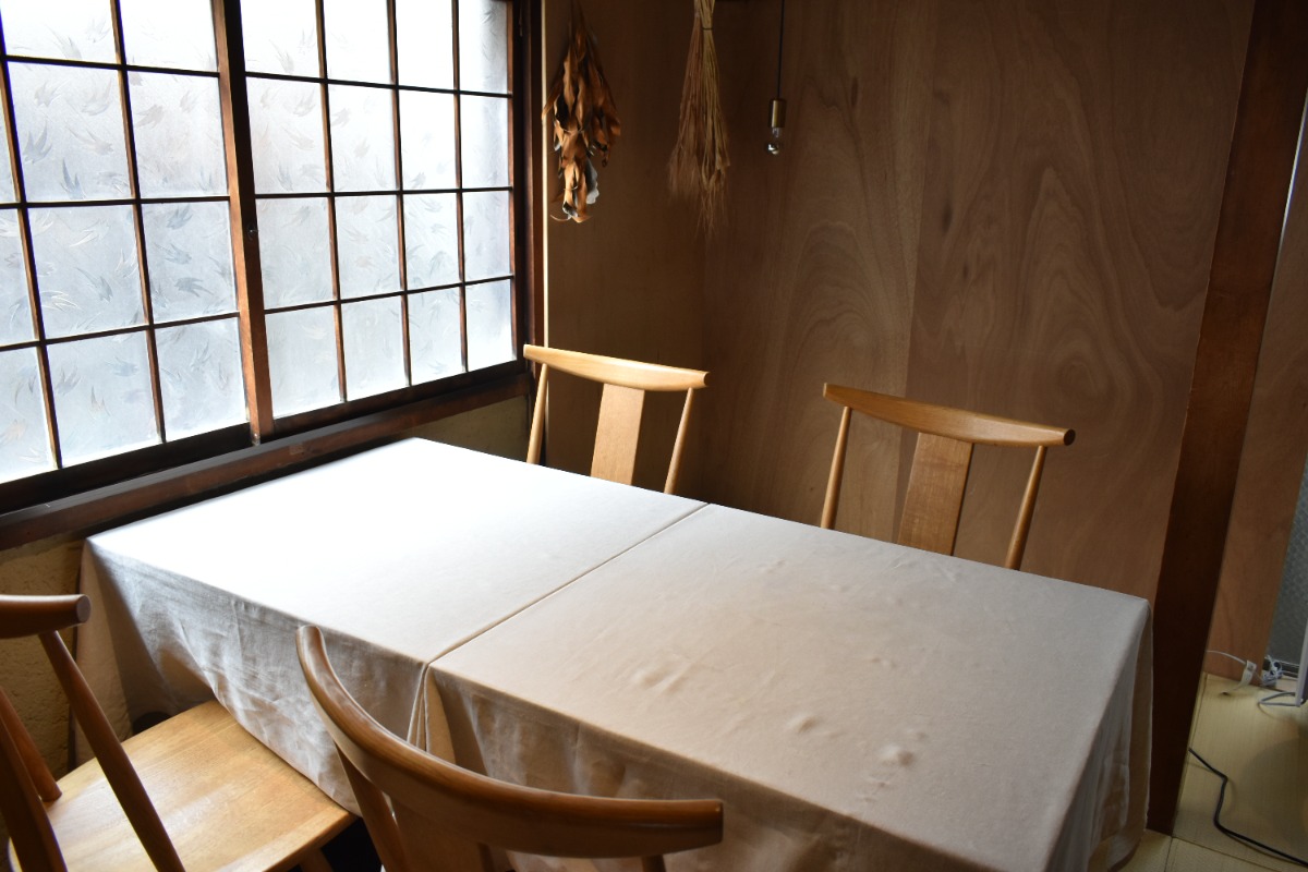 築60年という建物の中には、素朴ながらも自然の風合いが生かされた空間が広がる。