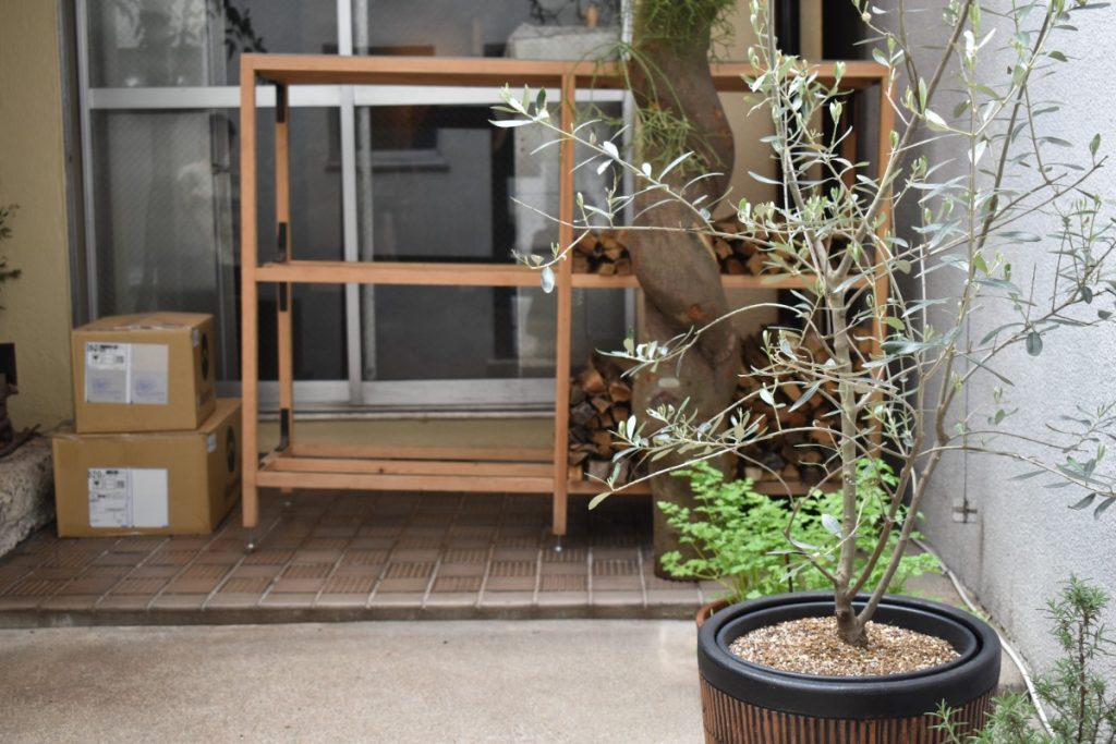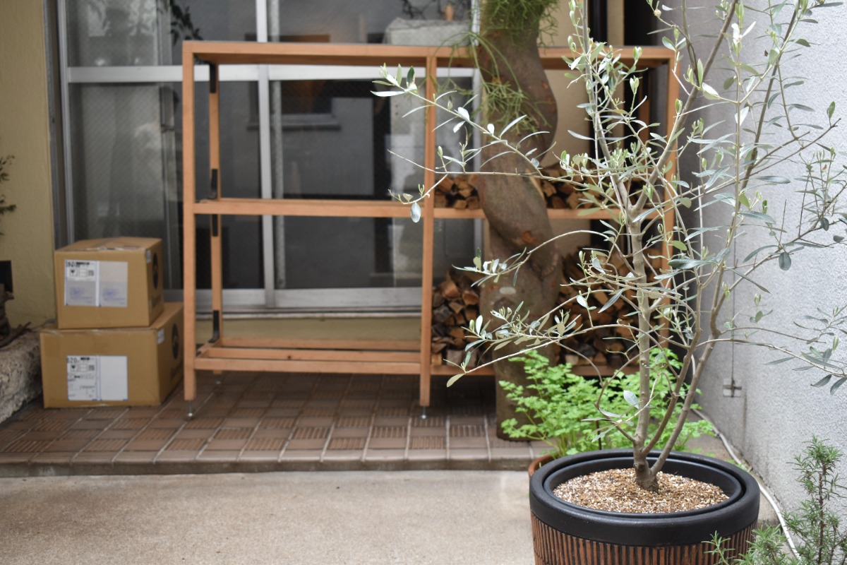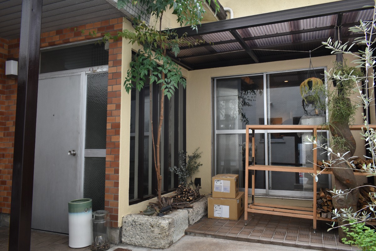 お店の間口は一見普通のお家のような外観。普段の営業中は正面の木棚に薪がたくさん積まれている。