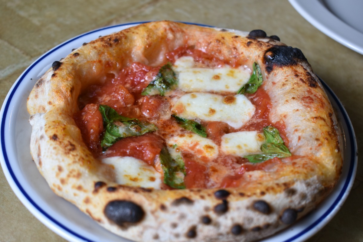 石窯で焼き上げられたピッツァはフワっと柔らかく、甘めのトマトソースとよく合う。